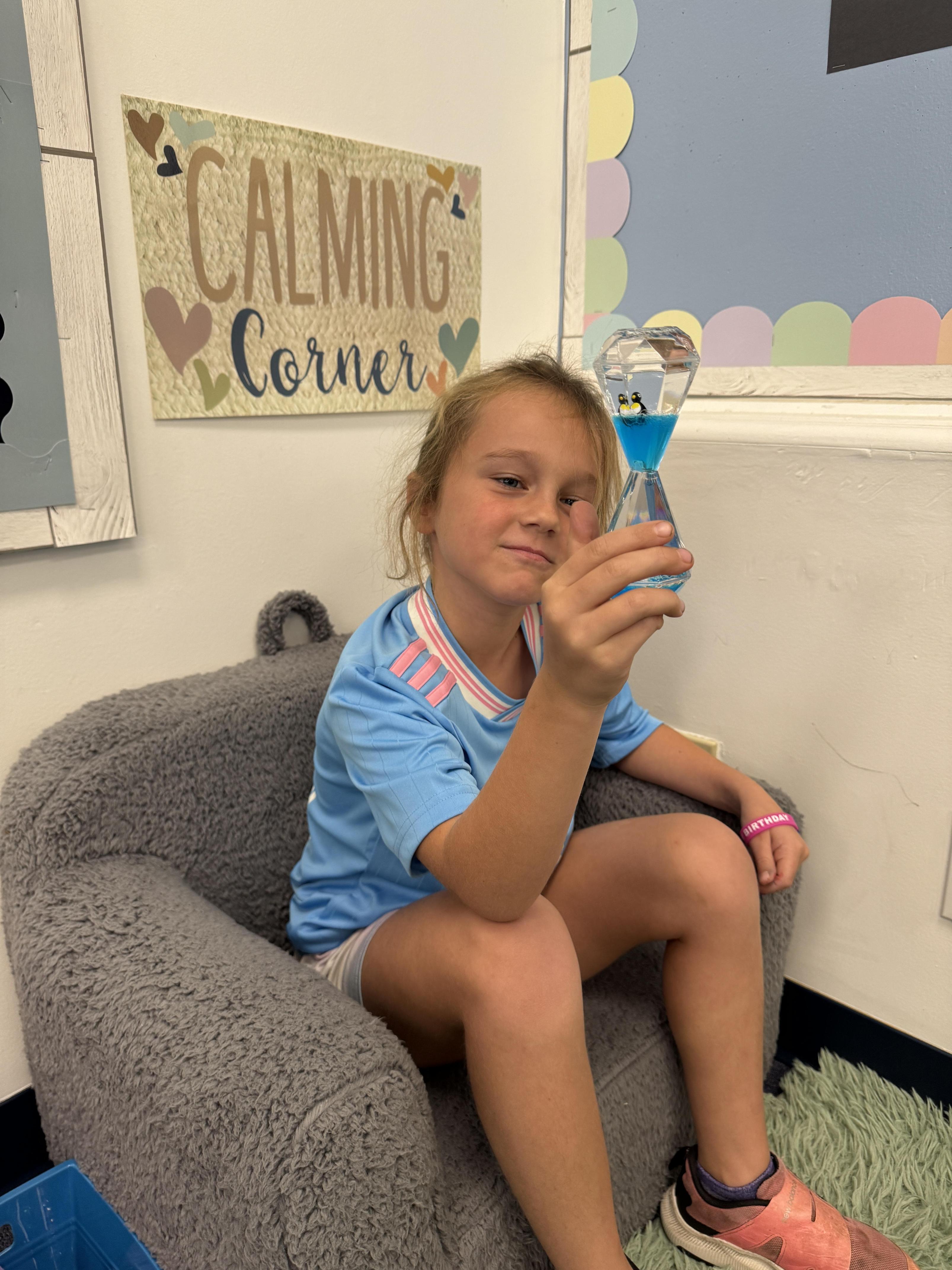 Now that we are well into first grade, we have already learned so much about ourselves and each other! Specifically, we have learned that everyone has big feelings sometimes, and that’s okay! We were inspired by the book The Color Monster, by Anna Llenas, and have learned to identify and understand our emotions to feel more in control. We have introduced our classroom Calming Corner and practiced when it’s a good time to use it – when we’re feeling frustrated, sad, overwhelmed, or anxious. Students had the opportunity to explore the different tools we have available, such as fidgets, a weighted stuffed animal, calming visuals, and practice how to use them safely and respectfully. By learning these strategies, we are building self-awareness and self-regulation skills that will help them return to learning ready and focused.