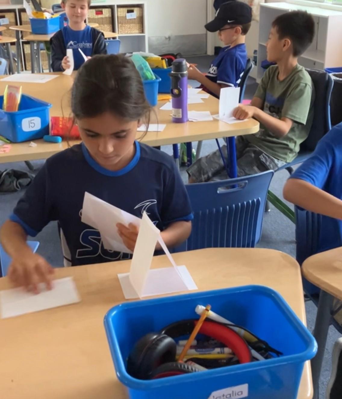In mindfulness, students have been exploring their big goals and the mindset it takes to achieve them. They began by learning about growth mindset—the idea that our skills improve with practice and that mistakes help us learn. Through challenges like carrying an egg on a spoon across the room or building a house of cards, students practiced persistence and positive self-talk (for example, saying, “Mistakes are how I learn and grow!”). More recently, they’ve explored the importance of patience and self-discipline as they work toward their goals. Through storytelling, art, games, and discussion, students are reflecting on what they can do now to begin achieving their dreams for the future.