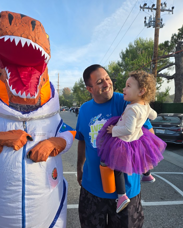 Upon arrival, Crestview families were greeted by our dancing Dinosaur Astronauts, Rocket Rex and Blastasaurus. The morning kicked off with a hearty pancake breakfast, perfect for catching up with friends and fueling up for the walk ahead. Our co-MCs, Rene Alvarado and Ryan Radis, kept everyone informed and entertained throughout the morning. Sixth grader Kalleigh P. performed the national anthem, earning enthusiastic applause and setting an inspiring tone for the day. After an exciting parade of classes and alumni, our walkers and runners took their marks, got set, and took off. Throughout the morning, everyone had a wonderful time, whether running at top speed, jogging, walking, listening to music, or spending time together.